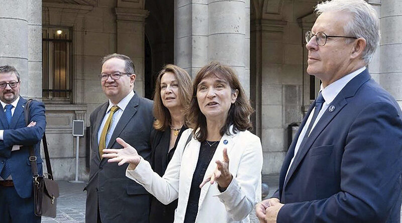 Guillaume Fiquet, vicepresidente de Asuntos Internacionales; Béatrice Pérez, decana de la Facultad de Humanidades; Samantha Chareille, directora de Asuntos Internacionales y Europeos de la Universidad de la Sorbona; y David Marcilhacy, profesor de Historia y Civilización Contemporáneas, en la Facultad de Humanidades.