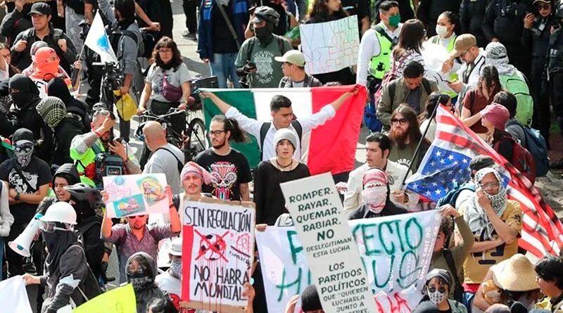 Desde el inicio, la marcha desistió de dirigirse hacia la sede consular. En cambio, los grupos avanzaron hacia el lado contrario y enfilaron al Zócalo.