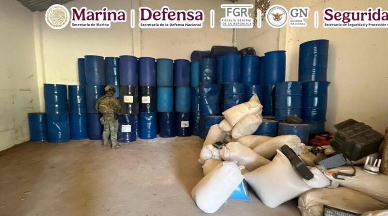 Ciudad de México 15 enero 2026.- Autoridades federales aseguraron en Guerrero dos inmuebles con más de 12 toneladas de precursores químicos para la elaboración de “Tusi” y metanfetamina, además de vehículos, armamento, municiones, ropa y equipo táctico.