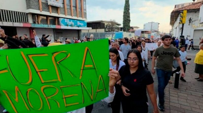 El contingente avanza al grito de: “El verdadero Bienestar nace de la justicia y no de los programas” y “¡Fuera Morena!”.