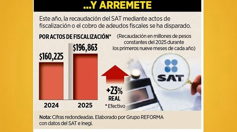 Monterrey, NL 7 diciembre 2025.- Todo un arsenal de facultades, casi ilimitadas y discrecionales, acumula el Servicio de Administración Tributaria (SAT) para sancionar a un contribuyente en 2026, advirtieron fiscalistas.