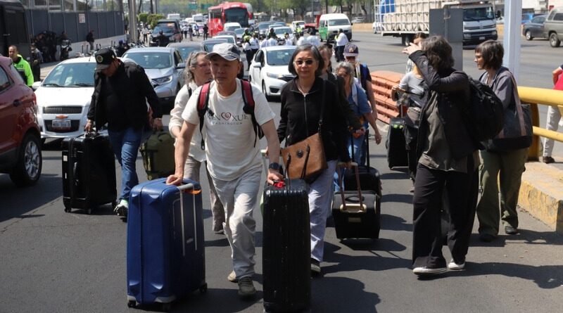 Decenas de pasajeros quedaron varados en los accesos de las Terminales 1 y 2, muchos de ellos esperando transporte por aplicación o caminando hacia avenidas cercanas para poder abordar vehículos fuera de la zona federal.