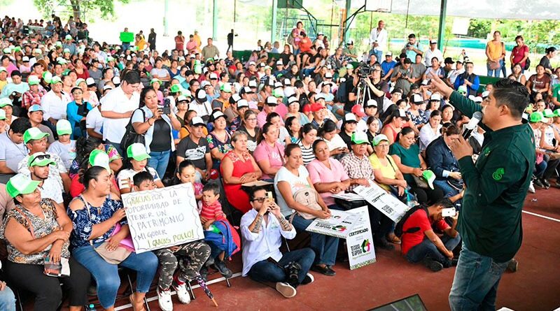 En medio del júbilo de mujeres y hombres de diferentes edades, y diversos oficios y trabajos,  Gallardo Cardona anunció que el programa contempla varias etapas, iniciando con la entrega de lotes, seguida por paquetes de materiales de construcción y culminando con la entrega gratuita de escrituras, garantizando así certeza jurídica y patrimonial para las familias beneficiarias.