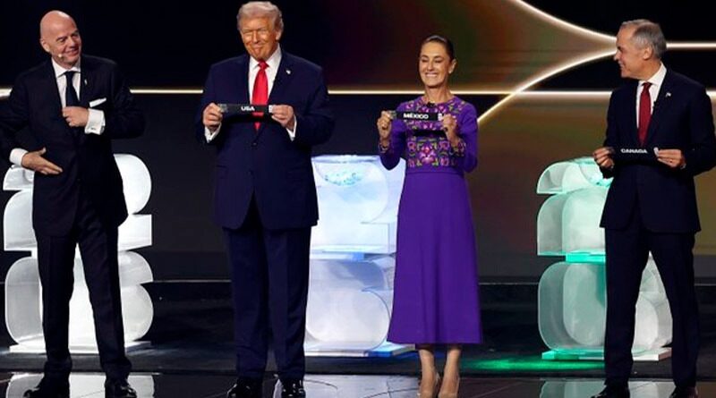 Washington DC, Estados Unidos 5 diciembre 2025.- El sorteo de la Copa Mundial de Futbol 2026 reunió por primera vez a los líderes de Norteamérica: la Presidenta de México, Claudia Sheinbaum; el Mandatario estadounidense, Donald Trump, y el Primer Ministro de Canadá, Mark Carney.