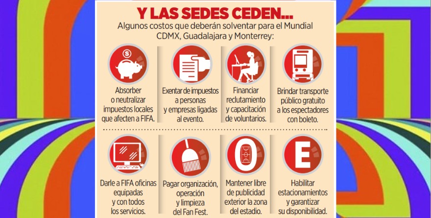 En cambio, el Gobierno federal y los de CDMX, Monterrey y Guadalajara pondrán todo, garantizarán exenciones fiscales y costo cero en la organización.