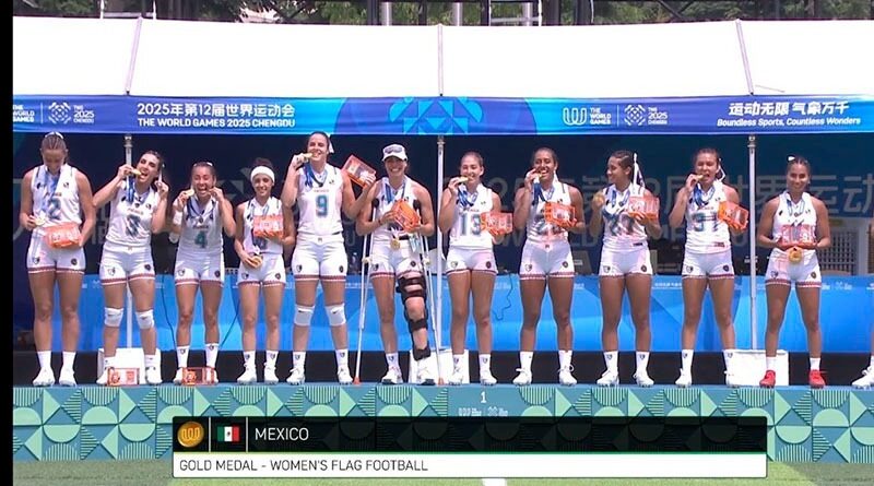 Chengdú, China 16 agosto 2025.-El flag football mexicano es bicampeón mundial. En un final dramático, la selección nacional femenil se agigantó y derrotó 26-21 a la potencia Estados Unidos en el duelo decisivo de los The World Games Chengdú 2025, refrendando la corona obtenida en Birmingham 2022.