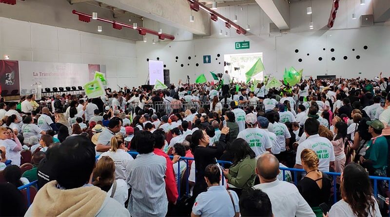 San Luis, SLP, 13 septiembre 2025.- Miles de simpatizantes del Partido Verde Ecologista de México (PVEM) arribaron este sábado 13 de septiembre al Centro de Negocios Potosí para manifestar su respaldo al Gobernador del estado Ricardo Gallardo Cardona y a la presidenta de México, Claudia Sheinbaum Pardo