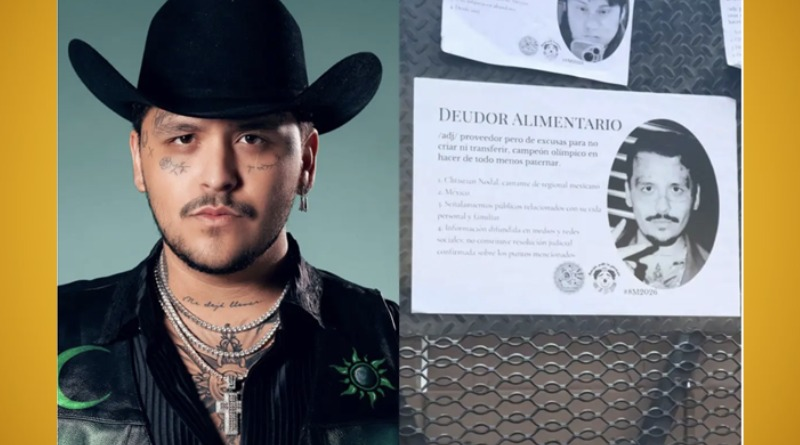 Durante la marcha del 8 de marzo en la CDMX, colectivos feministas colocaron la fotografía del cantante Christian Nodal en uno de los llamados tendederos de deudores alimentarios, una forma de denuncia pública utilizada en las movilizaciones para señalar a hombres acusados de no cumplir con la manutención de sus hijos.  La imagen del intérprete de regional mexicano apareció pegada en vallas del Centro Histórico, junto a otras fichas con nombres y rostros de presuntos deudores.