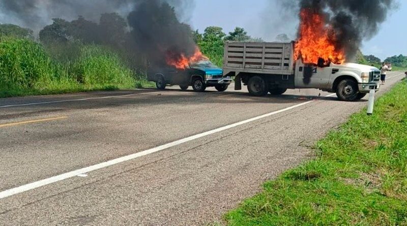 En el tramo Arriaga-Ocozocoautla, dos vehículos fueron atravesados e incendiados, mientras que en la vía a Villaflores los hombres armados quemaron varios carros.
