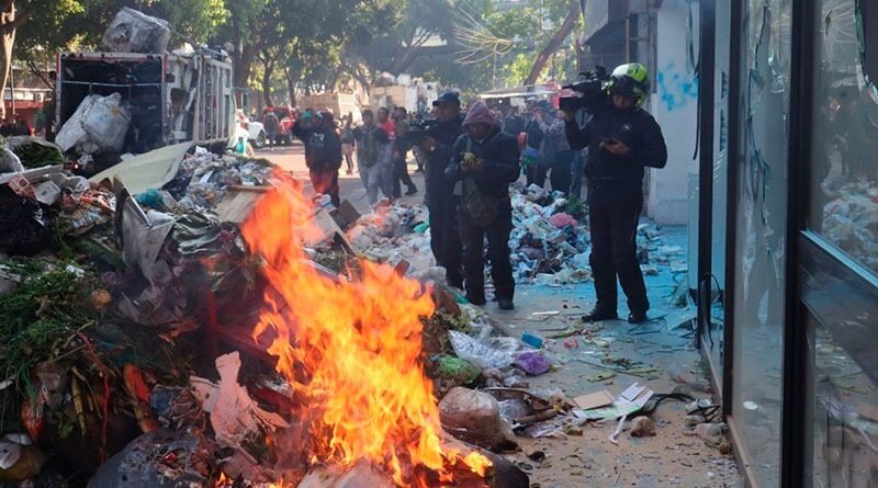 Ciudad de México 12 diciembre 2025.- Trabajadores de limpia de la Ciudad protestaron ayer para exigir su basificación quemando basura y vandalizando oficinas de Servicios Metropolitanos (Servimet).