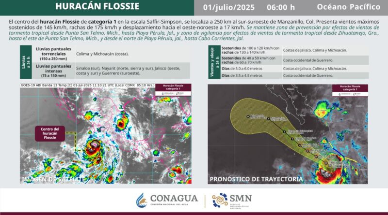 Ciudad de México 30 junio 2025.- La noche de este lunes el ciclón tropical “Flossie” se convirtió en huracán informaron los servicios meteorológicos.