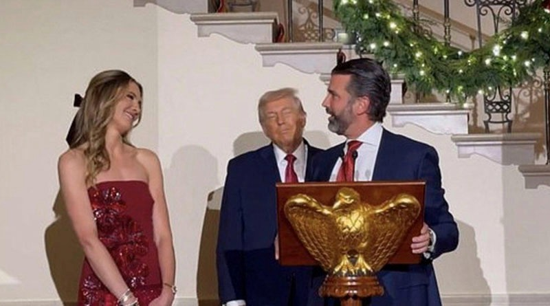 El momento clave ocurrió cuando Trump Jr. tomó el micrófono para agradecer la presencia de los invitados y, con una sonrisa que lo delató, compartió que Bettina había aceptado su propuesta de matrimonio. Entre aplausos, abrazos y un ambiente lleno de luces y música festiva, la pareja celebró públicamente el inicio de esta nueva etapa.